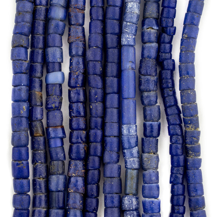 Checkout this beautiful strand of African sandcast. The process of making these beads is unique to Africa and has been used for over 1000 years. Pulverized glass of various colors is poured into a clay mold, using a cassava stem for the bead's hole. The mold is placed in a furnace and heated until the glass particles congeal without actually melting and the stem burns out. People of West Africa have been making beads in this manner since the 1600s. Beads are measure 4-7 mm in diameter. They may be somewhat irregular in shape for a more rustic look. Two strands shown in image however strands are sold individually. Each strand is unique and bead count is intended to be approximate.