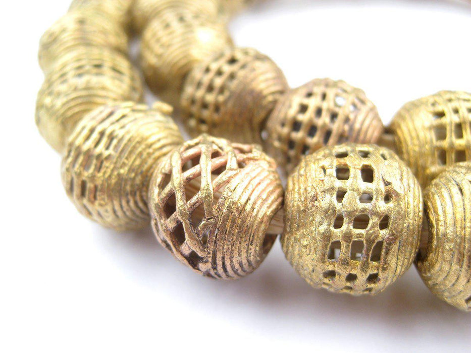 Basket Design Round Ghana Brass Filigree Beads (16mm)