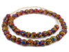 Recycled glass beads are a type of indigenously produced African bead from Ghana West Africa. These beautiful red recycled beads are made using an old method that has been used for centuries. The glass itself is derived from a variety of recycled sources including old beverage and medicine bottles. The procedure for making the beads consists of a number of steps whereby powdered glass is poured into molds of clay and baked in a specialized oven. These beads are produced in large part by the Krobo tribe and through recycling glass are environmentally friendly. Each bead measures approximately 13-14 x13mm with a hole size of approximately 2mm. You will receive a full strand measuring approximately 30". Some strands may not have raffia and in that case the strand length may be shorter even though the bead count is similar. Shade of red may vary slightly from photo. Please let us know in advance if you have specific requirements.