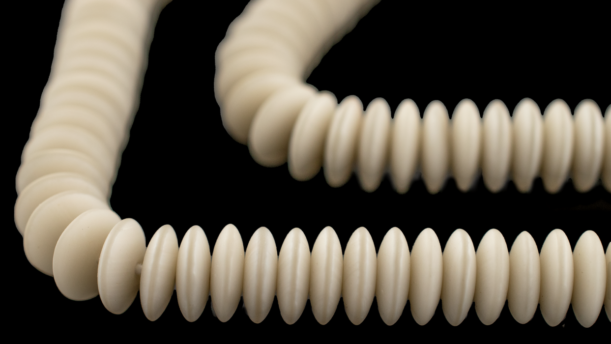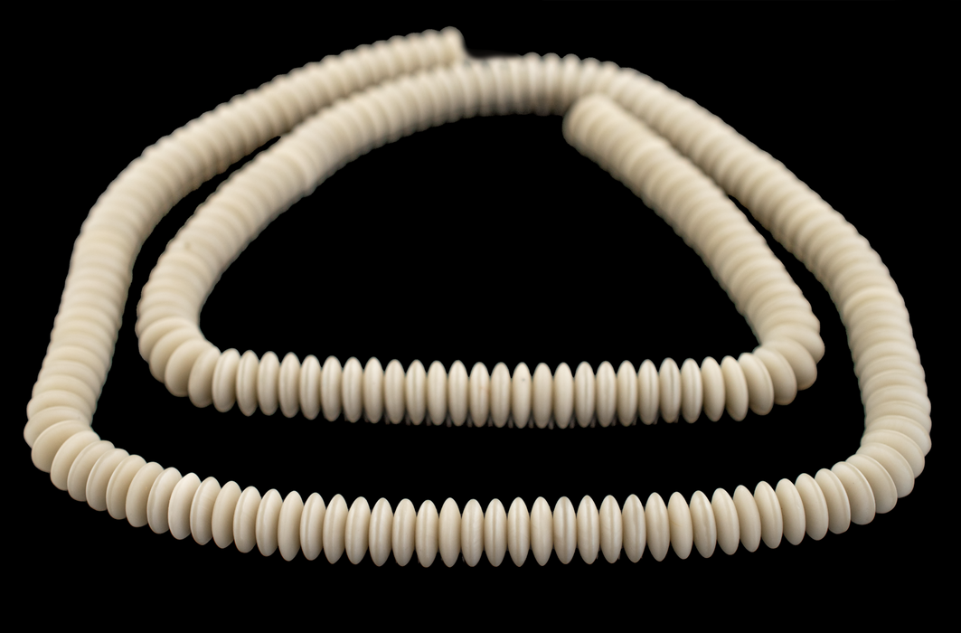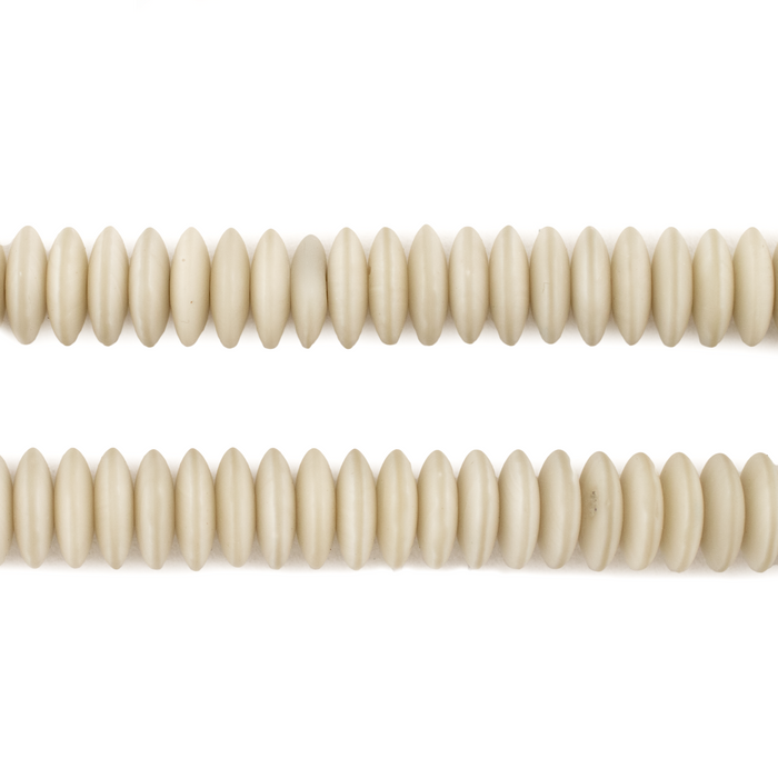 Create timeless jewelry designs with our White Glass Saucer Beads. Made from high-quality glass, each bead is precisely shaped into a classic saucer form, versatile enough for both intricate and minimalist designs. The neutral ivory color provides a versatile backdrop that complements a wide range of materials and hues, making these beads a staple in any designer's collection. Each bead measures roughly 3 x 9mm with a hole size of about <1mm. You will receive one full strand measuring 23" in length. Grab a strand or two for your design toolkit today.