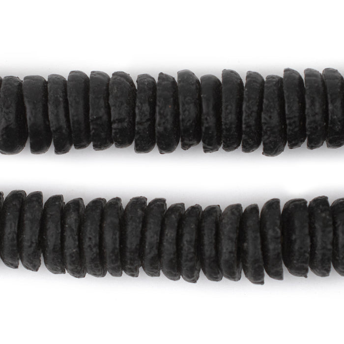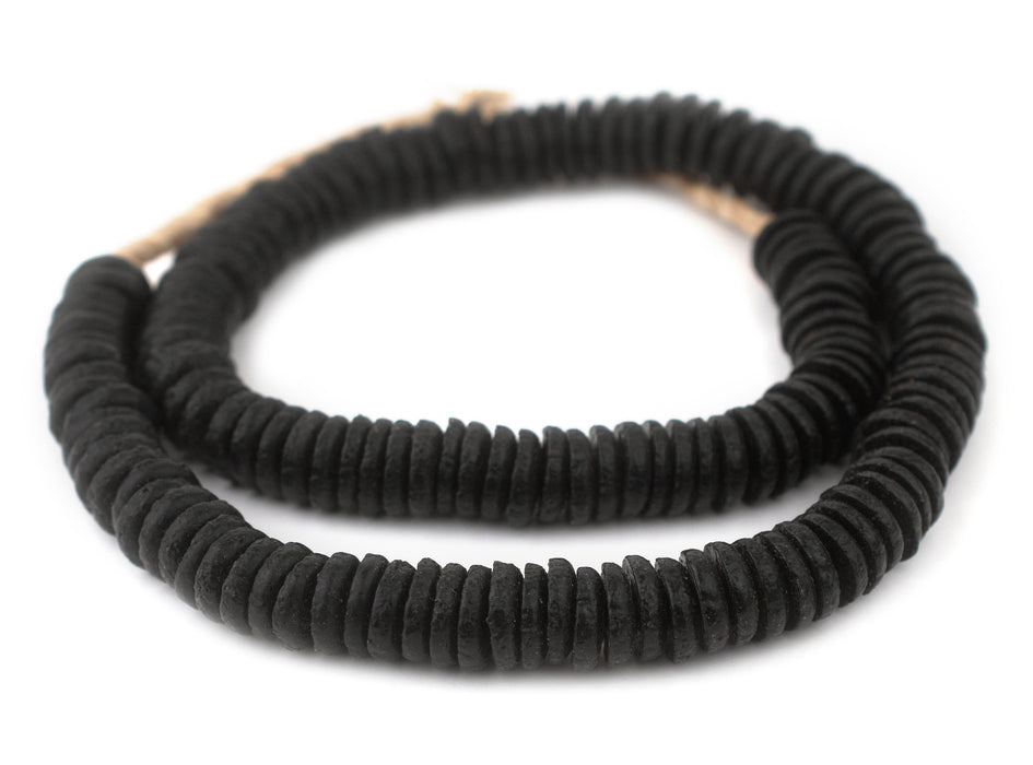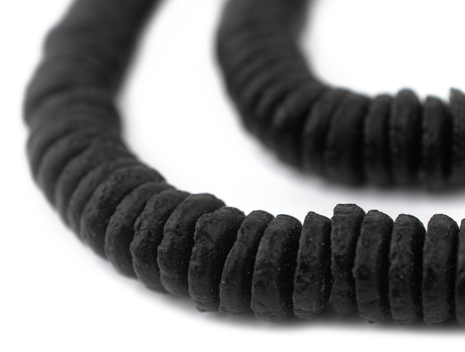 Checkout this beautiful strand of Ashanti glass saucer beads. The process of making these beads is unique to Africa and has been used for over 1000 years. Pulverized glass of various colors is poured into a clay mold, using a cassava stem for the bead's hole. The mold is placed in a furnace and heated until the glass particles congeal without actually melting and the stem burns out. The Ghanaians have been making beads in this manner since the 1600s. Each bead measures approximately 3-4 x 14mm with a hole size of approximately 3mm. You will receive a full strand measuring approximately 28". Available in many colors.