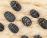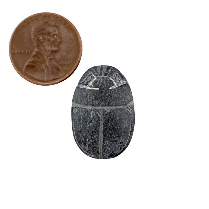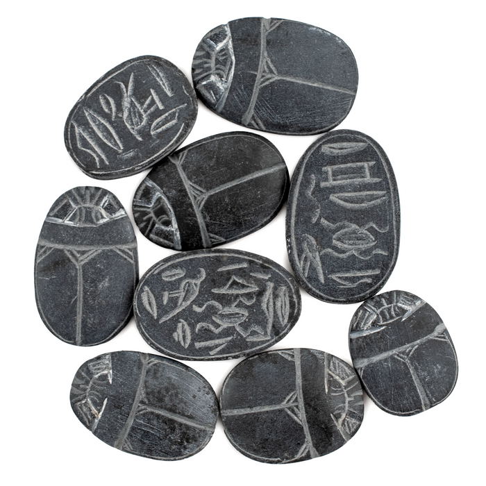 Take a look at this genuine Egyptian scarab made of authentic Basalt stone. Scarabs are considered sacred in ancient Egyptian culture. This authentic piece is said to have been carved in the region of Luxor, an important site of the ancient Egyptians. The scarab does NOT have a hole, therefore it must be bezeled or set in order to use it in your jewelry designs. Each scarab measures approximately 20-24 x 14-18mm in size with a thickness of 4-6mm. Each piece is unique and the size will be somewhere in this range. One order is for a single scarab. Multiple pieces shown to illustrate variation. Please let us know in advance if you have any special requirements. Limited supply. Get yours today!