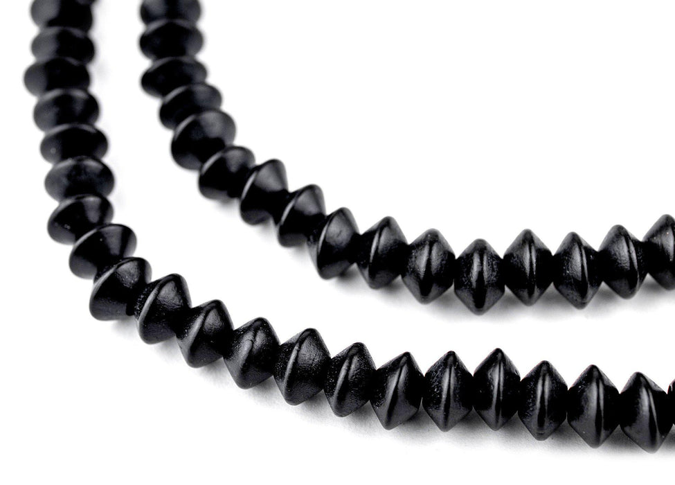 These wooden bicone beads are made of top quality natural wood and are perfect for your jewelry and craft projects. Available in a variety of finishes, our wooden beads are handmade, waxed, and are superior in quality to most wood beads on the market. Each strand is approximately 16" in length, with individual beads measuring approximately 5-6 x 8-9mm. The hole on each bead is approximately 1.5mm. Multiple strands pictured. Each strand sold individually. Quality beads at a great value -- get yours today!