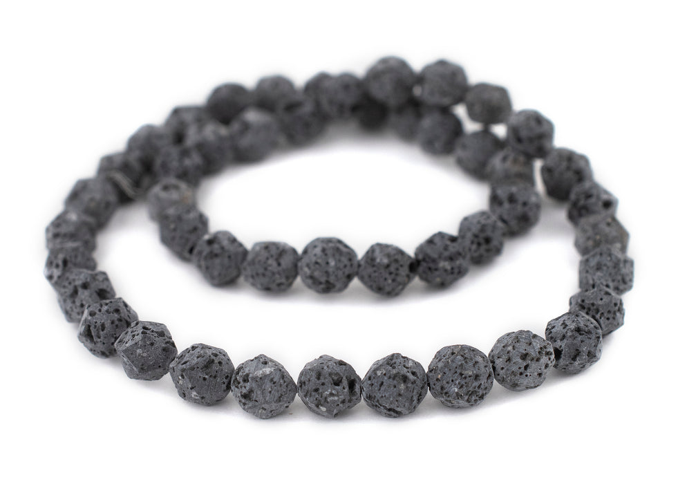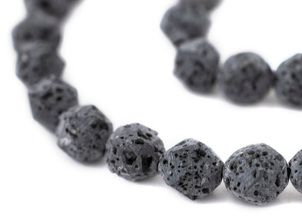 Take a look at these beautiful black beads made from volcanic stone. The special character of these bead is apparent in the texture of the surface and the nooks and crannies of the light-weight porous stone. Each bead measures approximately 8 x 8mm with a hole size of approximately 1mm. You will receive a full strand measuring approximately 15". Get your strand today!