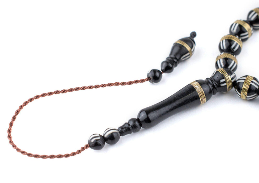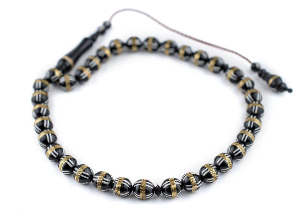 Black French Cross Round Brass-Inlaid Arabian Prayer Beads
