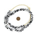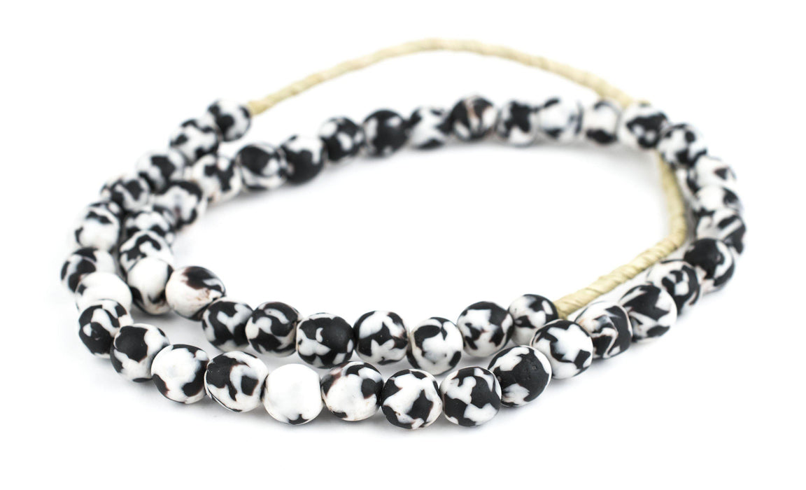 Recycled glass beads are a type of indigenously produced African bead from Ghana West Africa. These beautiful black recycled beads are made using an old method that has been used for centuries. The glass itself is derived from a variety of recycled sources including old beverage and medicine bottles. The procedure for making the beads consists of a number of steps whereby powdered glass is poured into molds of clay and baked in a specialized oven. These beads are produced in large part by the Krobo tribe and through recycling glass are environmentally friendly.