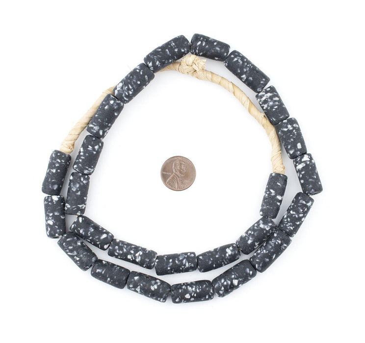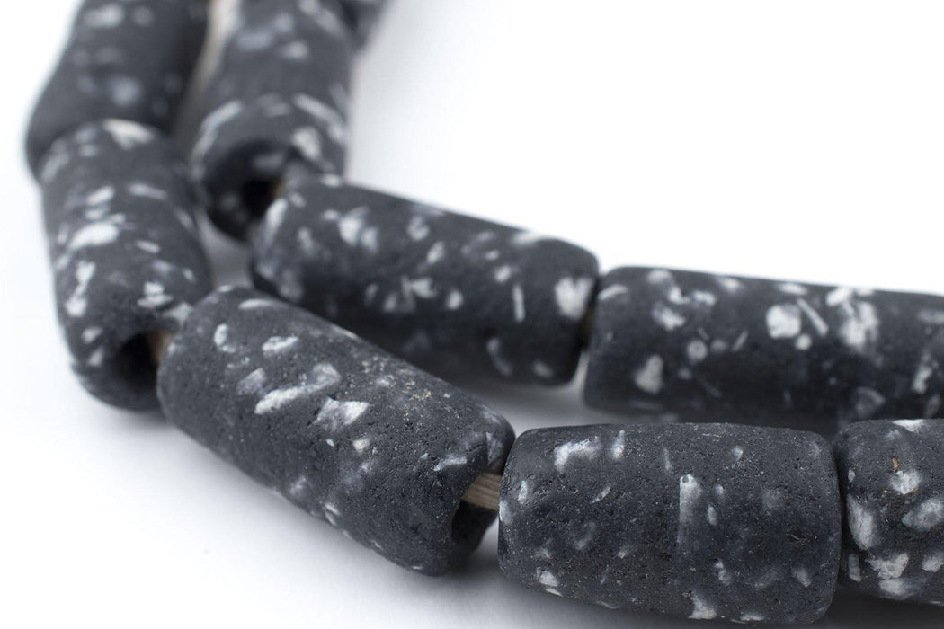Black Granite-Style Ghana Glass Beads (25x10mm)