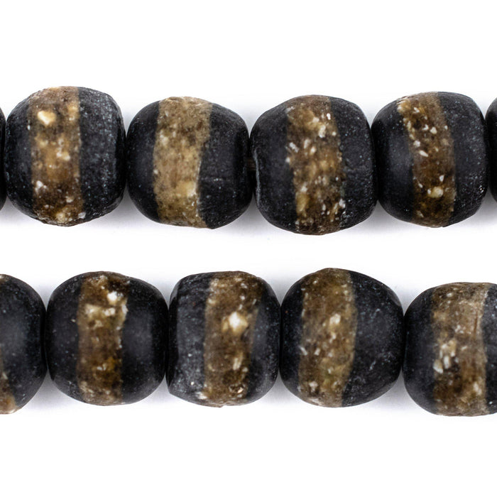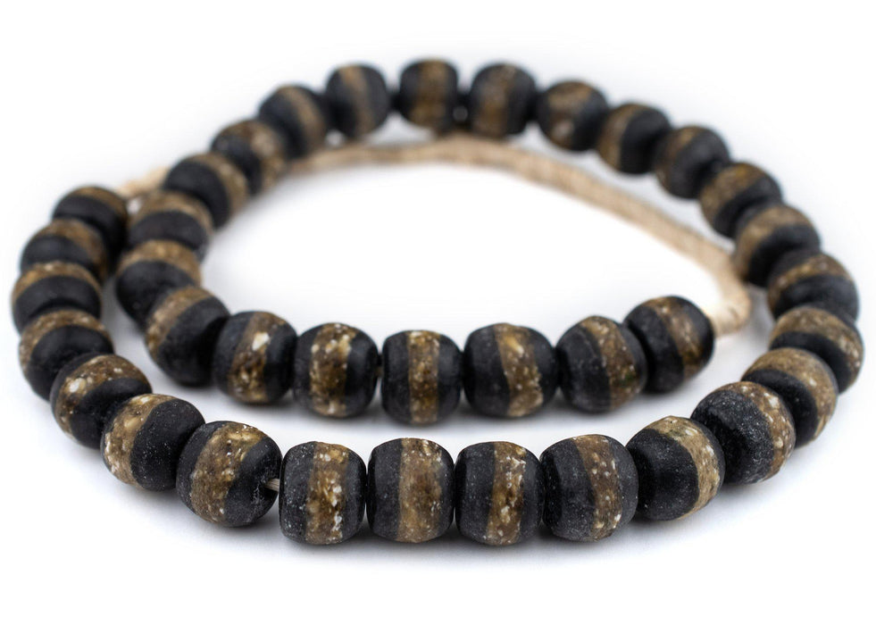 A beautiful strand of powder glass African beads, made by the people of Krobo Mountain in Ghana, West Africa. Many designs of Krobo beads are patterned to resemble old Venetian fancy trade beads. Made from bottles and other glass items that are turned into powder, then poured into molds in order to create these round shaped beads. Decorations on the beads are made with a paste made of colored glass powder and water which is applied by hand using a thin wooden stalk. Each bead measures approximately 14-15 x 17-18mm with a hole size of approximately 3mm. You will receive a full strand measuring approximately 28". Available in a variety of sizes.
