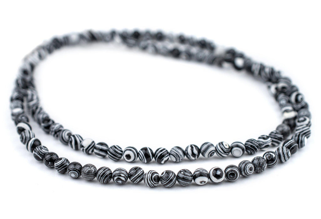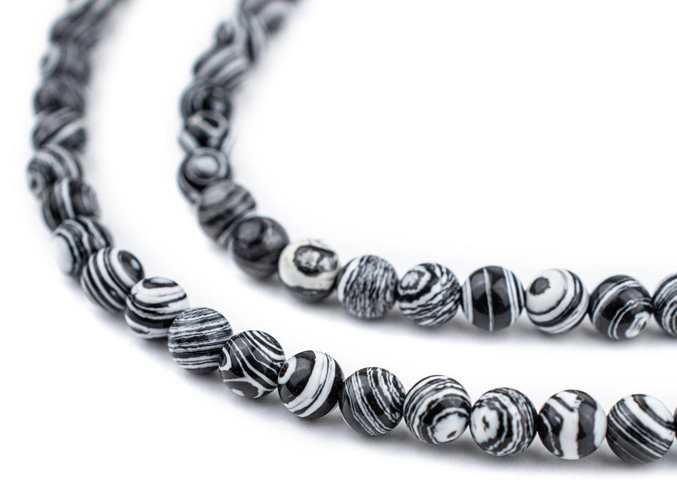 These whimsical stone beads are fashioned in a banded pattern similar to that of malachite gemstone. Available in a variety of sizes and colors, this round bead measures 6 x 6mm with approximately 65 beads on each 15" strand. Try a strand of these super fun beads today!