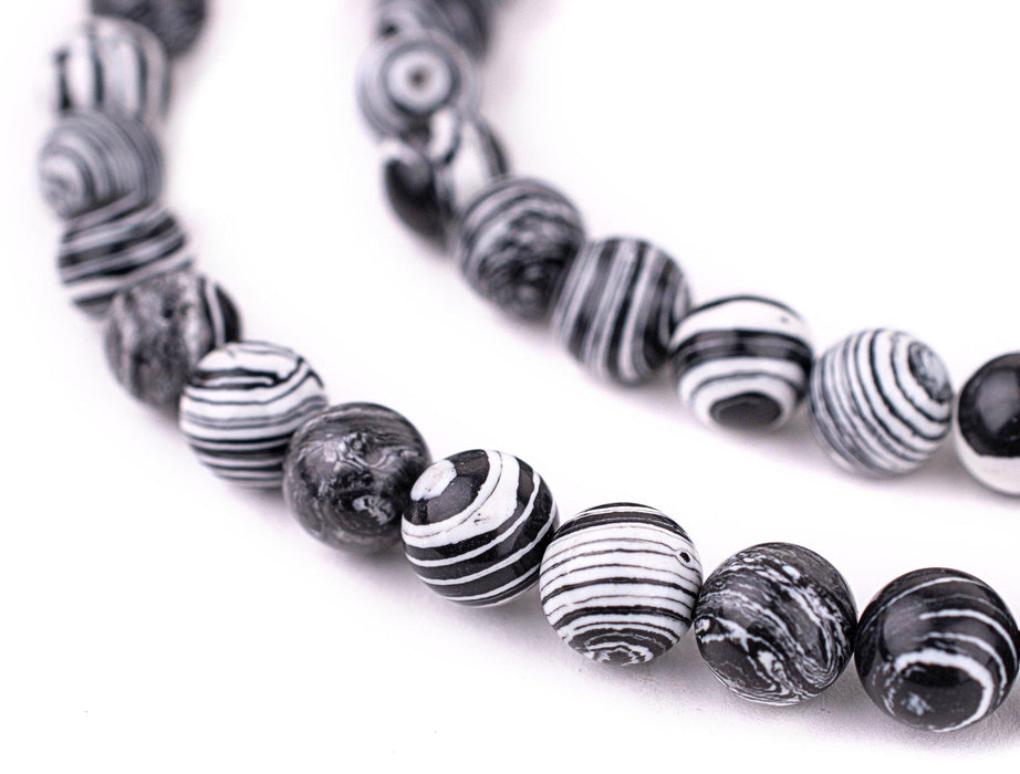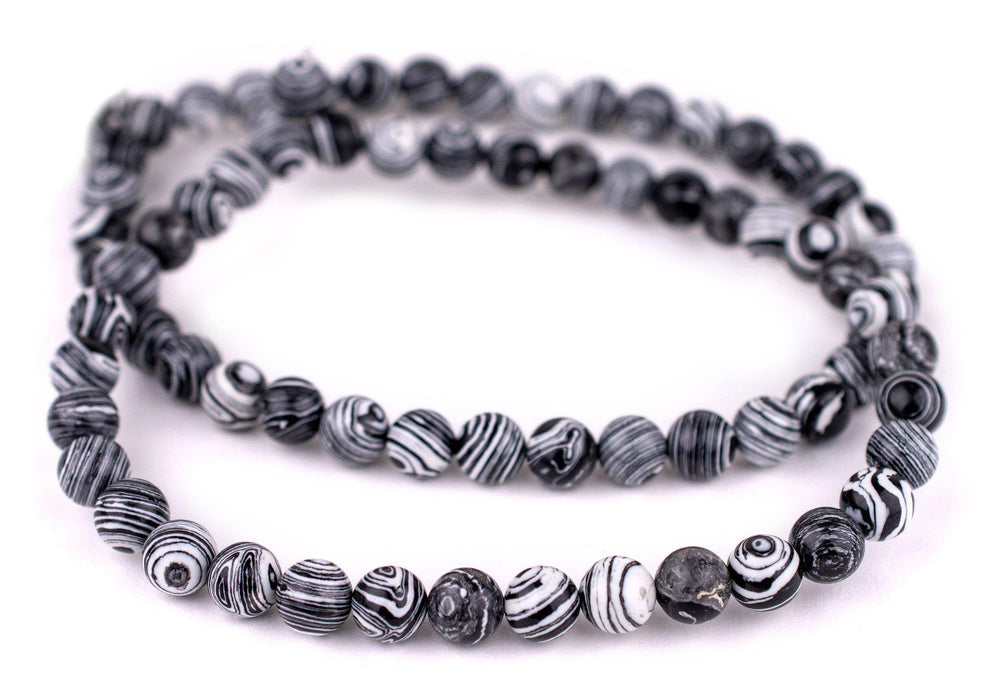 These whimsical stone beads are fashioned in a banded pattern similar to that of malachite gemstone. Available in a variety of sizes and colors, this round bead measures 10 x 10mm with approximately 38 beads on each 15" strand. Try a strand of these super fun beads today!