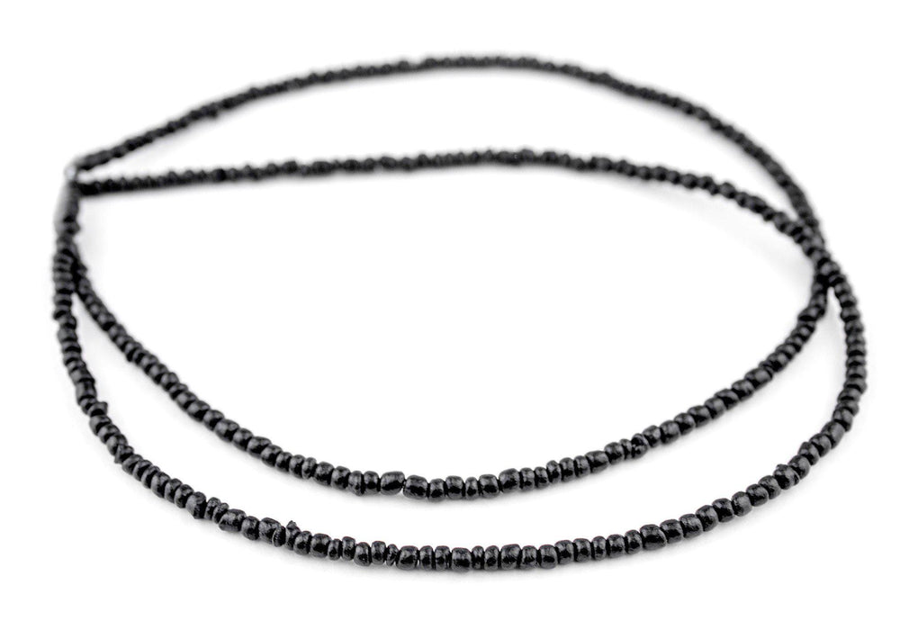These small black wooden beads are handmade using repurposed coconut wood. Coconut wood is an eco-friendly and sustainable material for beading. Each bead measures approximately 2-4 x 3-4mm in size, with a hole size of approximately 1mm. Each strand measures approximately 16 inches length. Multiple strands pictured. Each strand sold individually. Get yours today.