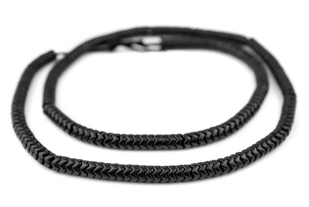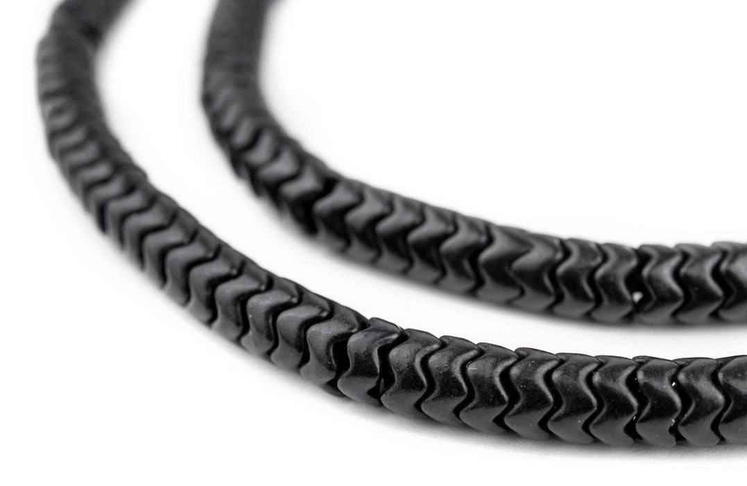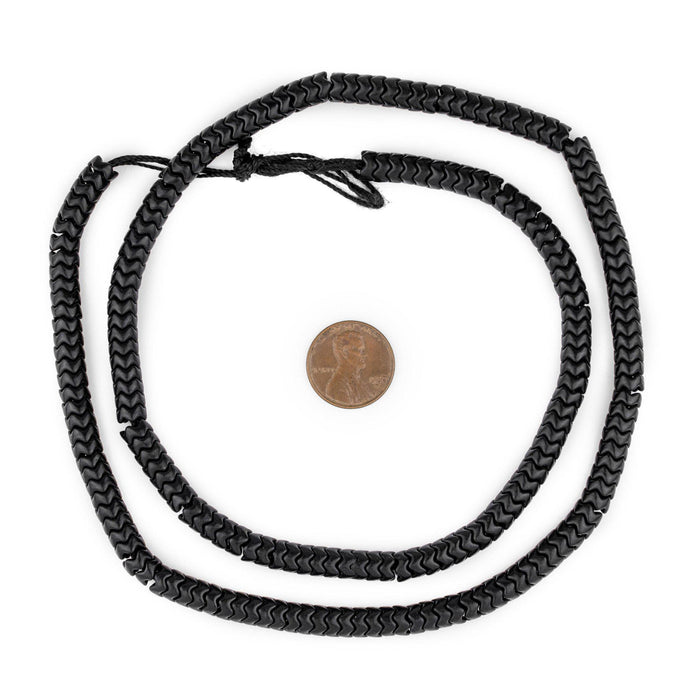 Take a look at these enticing Dark Black Resin Snake Bead Strands. Modeled after traditional Czech snake beads, resin beads like this are durable and very easy to work with. While vintage black snake beads are harder to come by, these interlocking beads are more readily available for your designs. Every strand is about 26" in length. Each bead is about 3-3.5 x 6-7mm with a roughly 1.5mm hole. Get yours today!