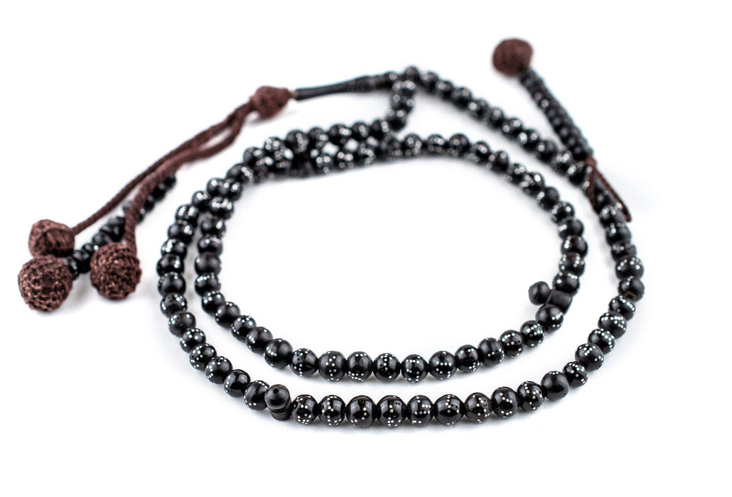 Black Silver-Inlaid "Names of Allah" Arabian Prayer Beads (6mm)