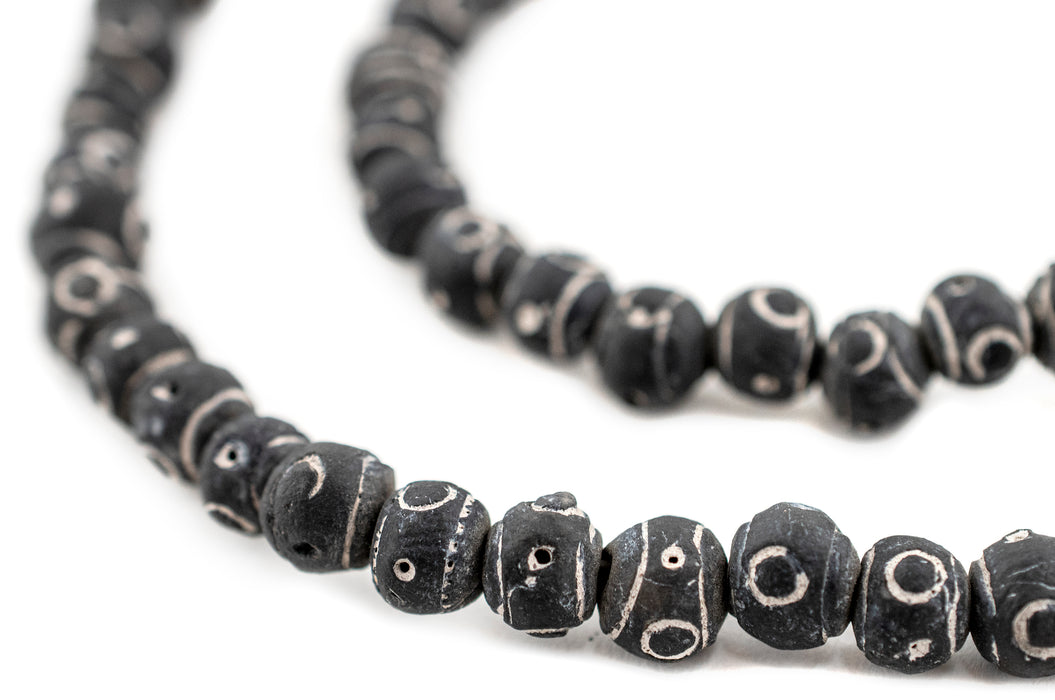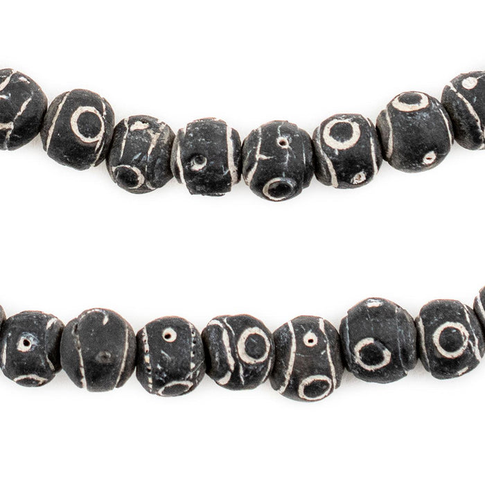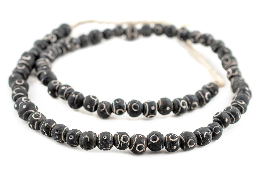 Take a look at this strand of black circle and dot patterned terracotta Mali clay beads. Beautifully hand crafted, each bead may show slight variation in size and pattern. Each bead measures approximately 9 x 10mm, with a hole size of approximately 2mm. You will receive one strand measuring approximately 28". There are around 65 beads on each strand. Grab a strand for yourself today.