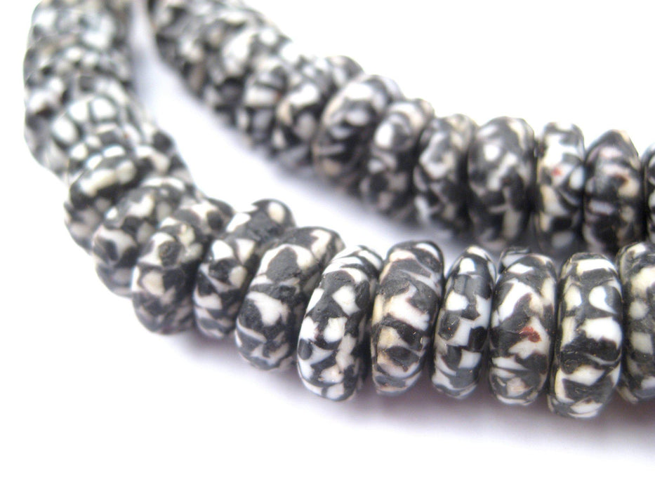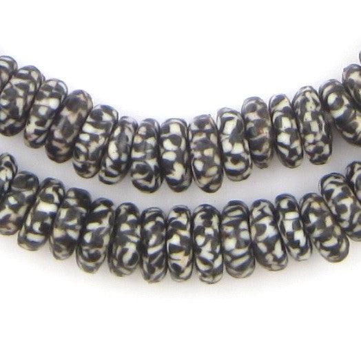 Black & White Fused Rondelle Recycled Glass Beads (11mm)