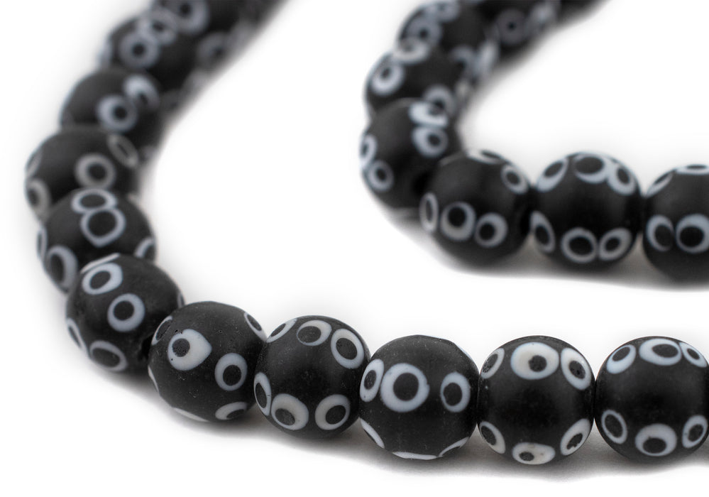 Commonly referred to as "skunk beads", these Venetian-style beads are inspired by traditional African trade beads. Original skunk beads are said to have been made in the 19th century and sent to Africa for trading however this rendition is far newer. Each bead measures approximately 10 x 10-11mm with a hole size of approximately 2mm.