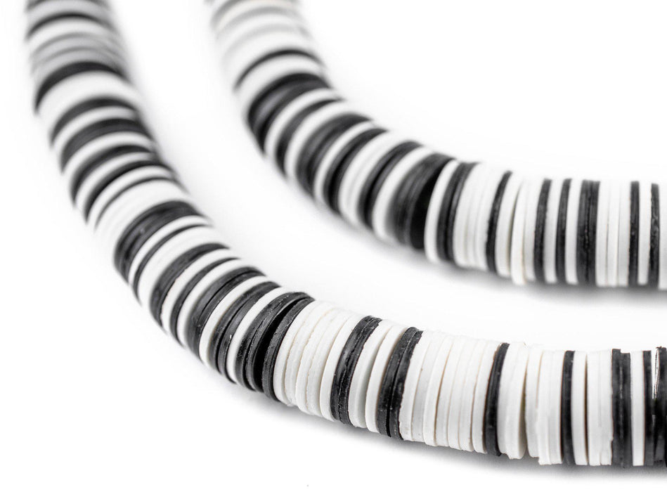 Take a look at this beautiful strand of African vinyl beads. Beads such as these are found in Ghana and Nigeria where they are sometimes worn as waist beads. Older versions of vinyl beads were said to be made from recycled phonograph records. This strand measures approximately 35" with individual beads measuring approximately 0.28 x 8mm. These beads are light, fun to wear and also versatile for jewelry designs. Each strand is sold individually.