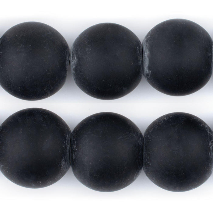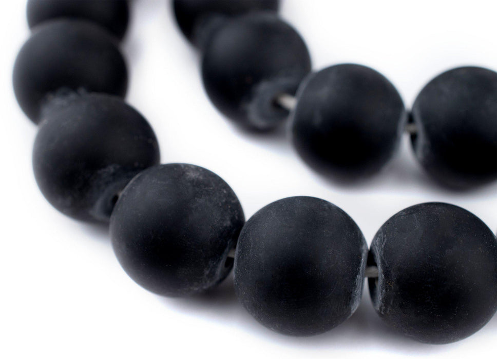 Handmade black wound glass beads. They are individually handmade by winding the hot molted glass around a mantel. The beads are 20mm in diameter and may show some minor age due to age.
