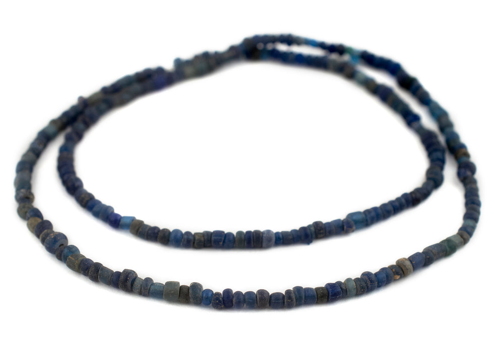 These authentic Djenne beads derive their name from the ancient city in Mali where they are found. Also known locally as Nila beads, they are said to be made of ancient excavated glass and are centuries old. The exact provenance of these beads is not known but it is believed that they may be possibly roman. Djenne beads are a more rare variety of African bead and are found in several colors including white, black, yellow, green, and blue. Blue beads such as these are more highly coveted and harder to find. Each bead measures approximately 2-4mm wide and 3-4mm in diameter. Each strand is unique and may vary slightly from strand pictured. Bead count is approximate.