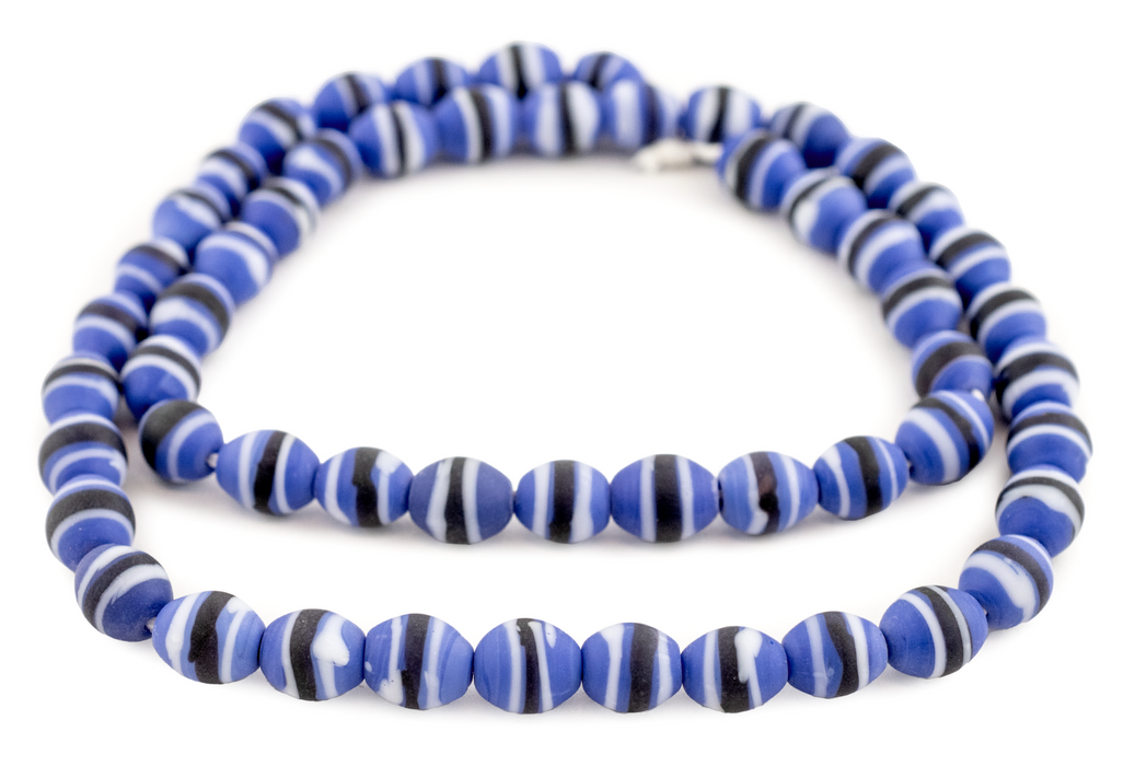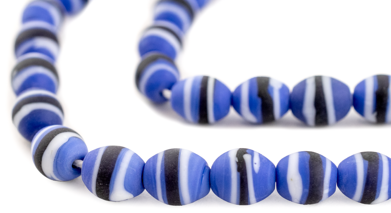Blue & Black Striped Venetian-Style Glass Beads (11x9mm)
