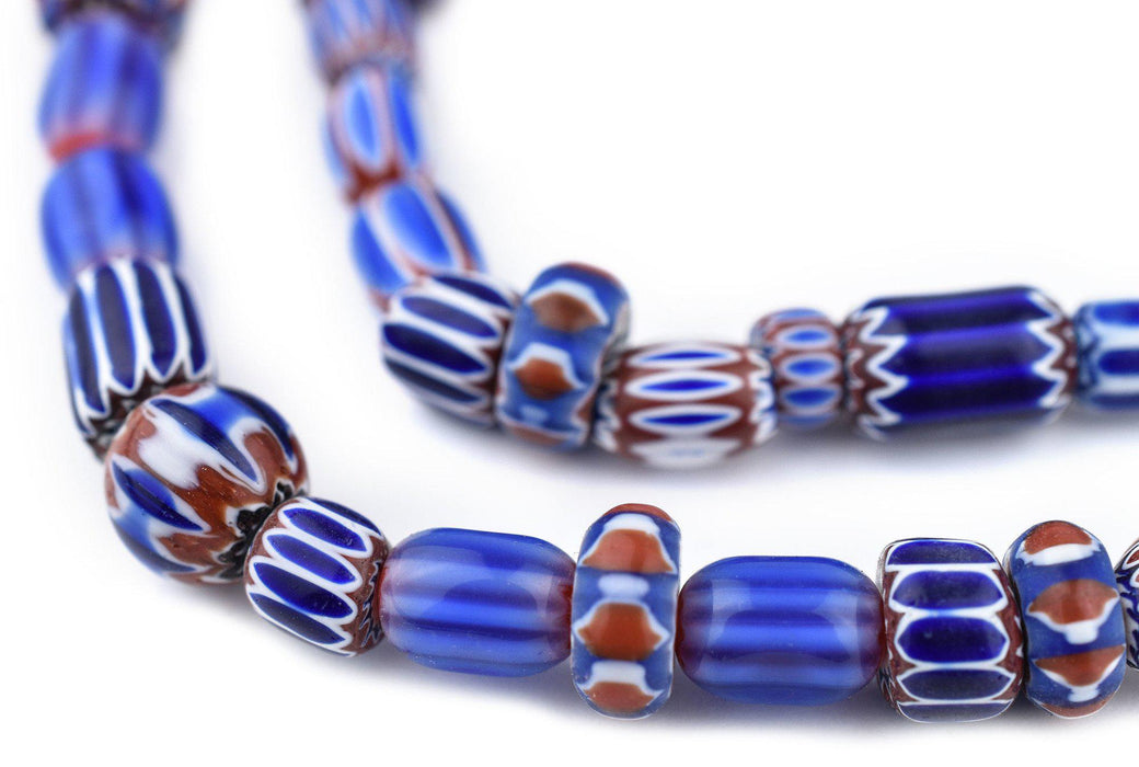 Take a look at these beautiful chevron beads measuring approximately 4-12 x 5-10mm in size. Chevrons have long been prized as the most valuable of African trade beads and are considered some of the most cherished beads by collectors to this day. Each strand is approximately 24 inches in length and contains approximately 70 beads. Strand may vary slightly from photo. Beautiful beads for your high-end jewelry designs!