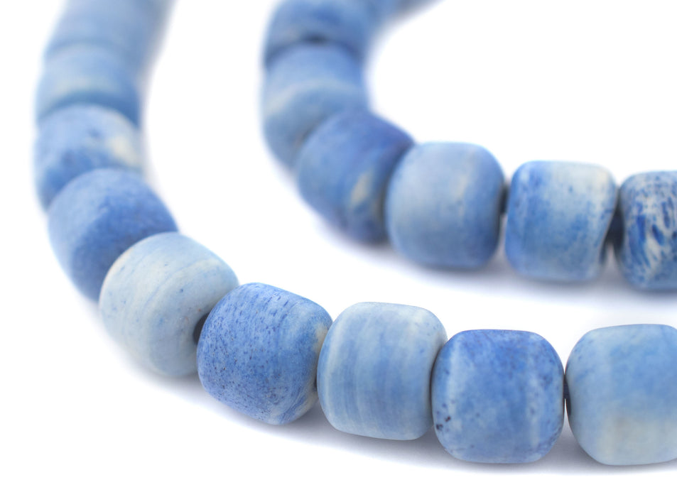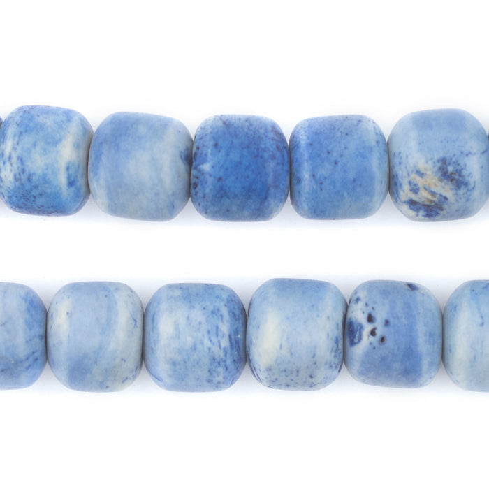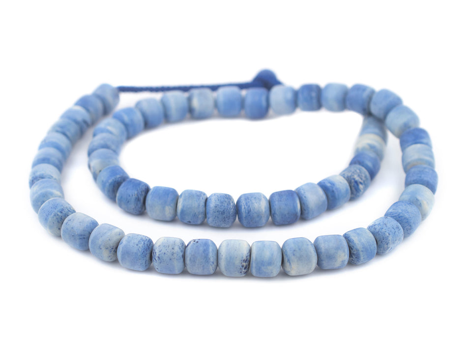 Admire these beautiful bone beads brought to you from Nepal. Handcrafted by a master artisan, these beads are toned with a blue gradient which includes a variety of shades. Rustic and natural, these large bone beads are great for your unique jewelry designs or can even be worn as-is. Beads measure approximately 12 x 14mm with a hole size of approximately 3mm. Shade and shape of beads may vary slightly from photo. Each strand measures approximately 32". Get yours today!