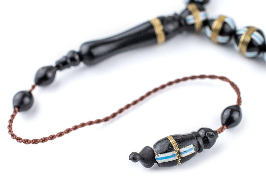 Blue French Cross Round Brass-Inlaid Arabian Prayer Beads