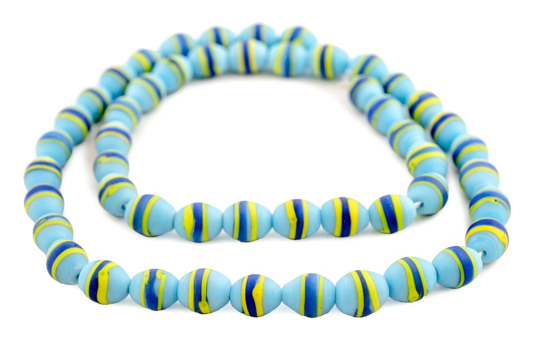 Admire this beautiful strand of matte glass beads reminiscent of Venetian trade beads! Glass beads similar to these were made throughout the 19th and 20th century primarily for export to Africa. This modern replica provides a similar style at a far more convenient price point! Each bead measures approximately 11-12 x 10mm with a hole size of approximately 1mm. You will receive a full strand measuring approximately 25". Available in a variety of colors.