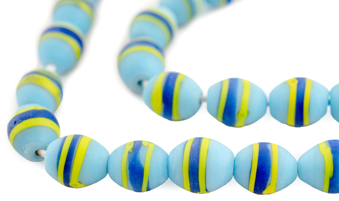 Blue & Green Striped Venetian-Style Glass Beads (11x9mm)
