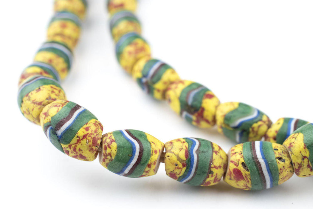 Blue, Green, Yellow Striped Oval Venetian Trade Beads