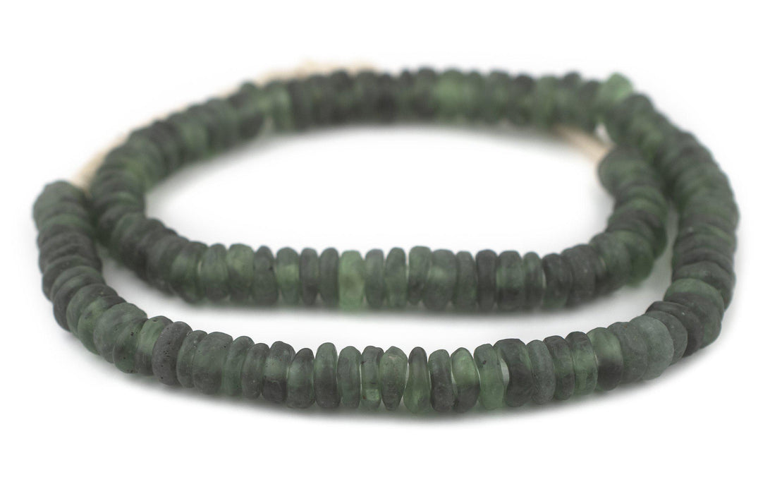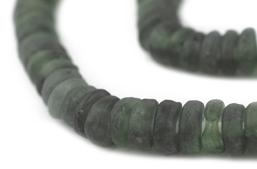 Green Grey Swirl Rondelle Recycled Glass Beads