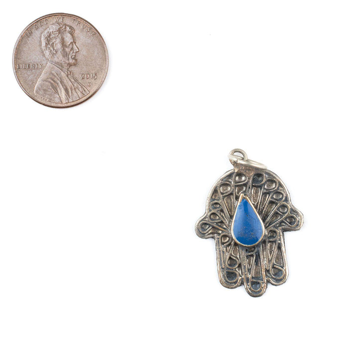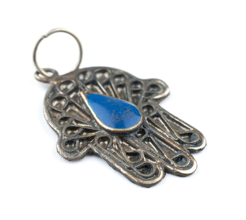 Blue Inlay Silver Moroccan Hamsa Pendant