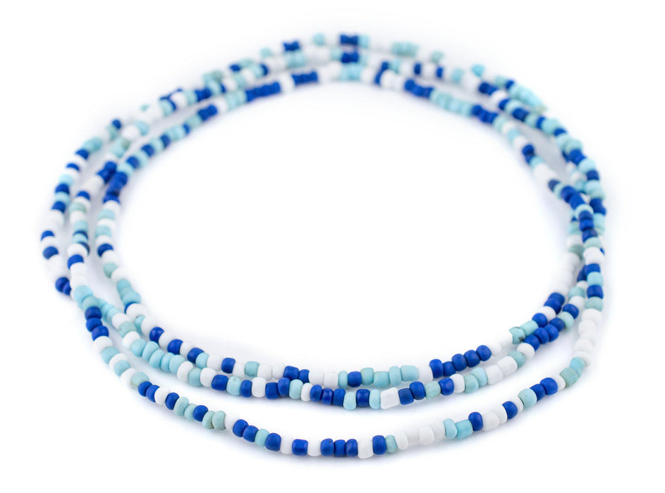 Brought to you from the Java islands, this extra long strand of glass seed beads includes a special medley of blue and white colors. Each bead measures approximately 3 x 4mm in size, with a hole size of 1mm. Each strand measures approximately 44 inches in length, which is twice the standard length! Nice medley at a great price. Get yours today.