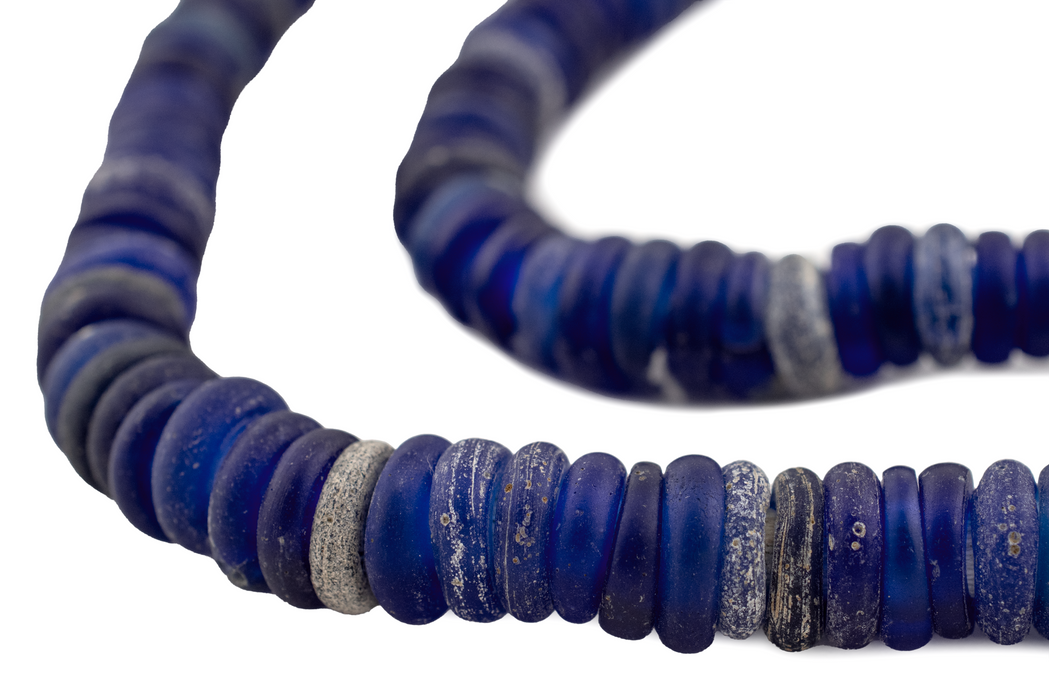 Fabulous strand of old annular wound trade beads also known as "Dutch Donuts". These african trade beads have traveled at least three continents and have graced numerous owners. Beads may have small chips or corrosion due to their age and extensive use. Strands may vary from photo.