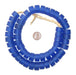 Take a look at these beautiful recycled glass beads. Powder glass beads are made by crushing glass to a fine powder and heating it so that the particles fuse together. The glass is then poured into clay molds, with a cassava leaf stem used to make the hole. They are baked in an oven and the glass fuses and the cassava stem burns up. This technique has been used in Africa for centuries. NOTE, strand shipped may not have raffia straw at the top.