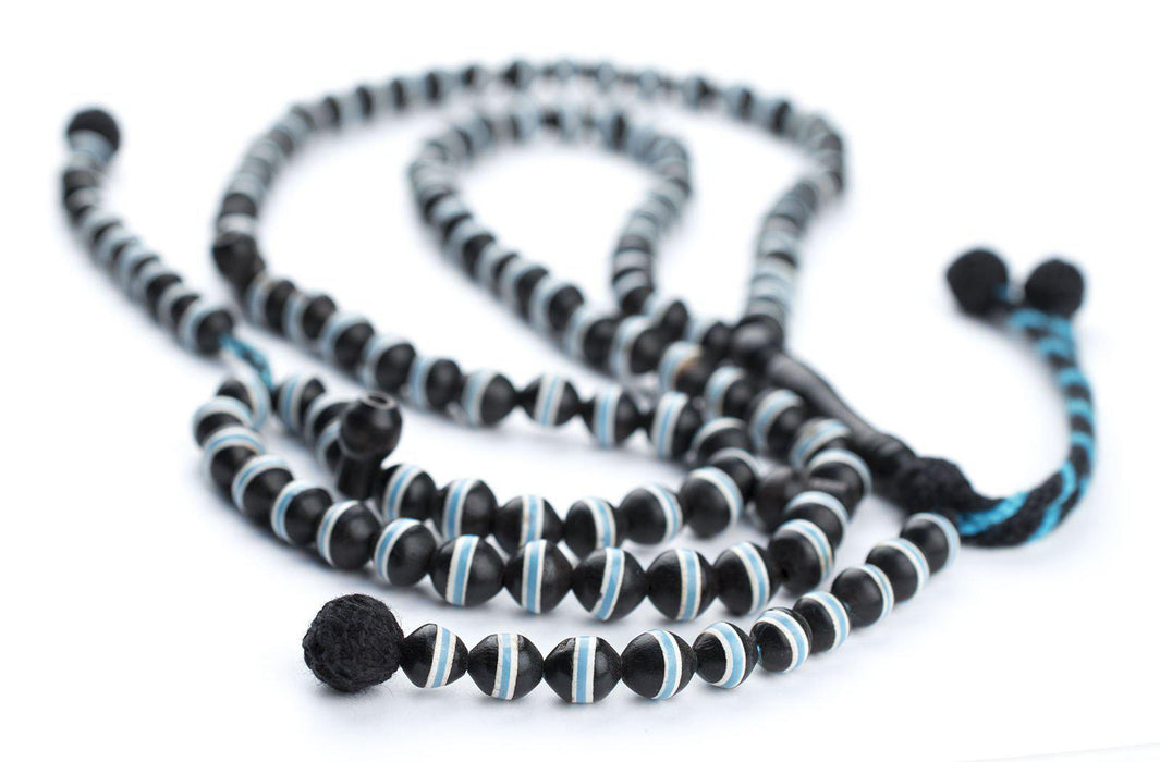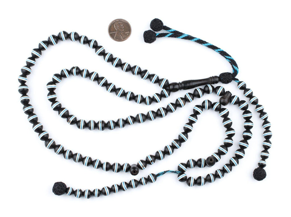 Blue Striped Inlaid Ebony Arabian Prayer Beads