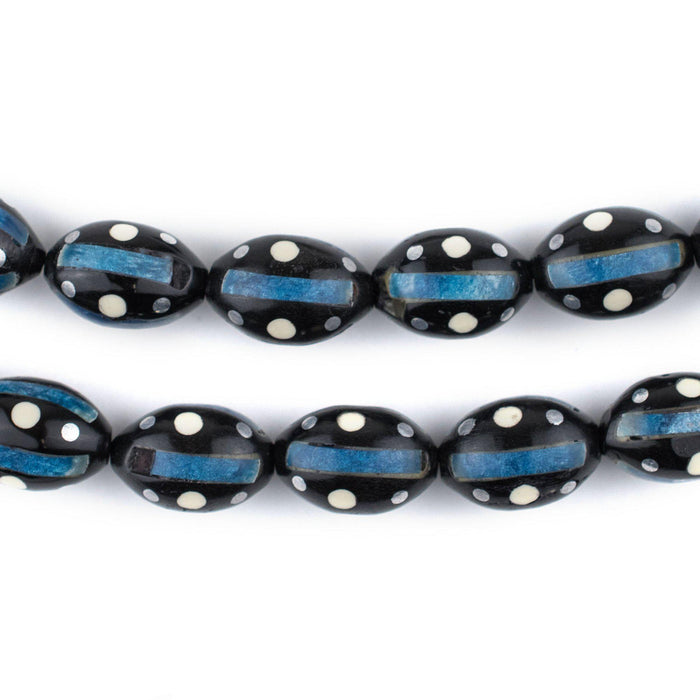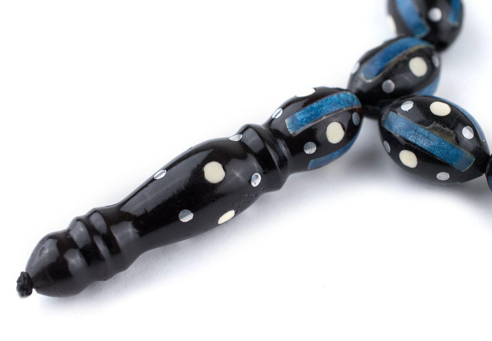 Blue & White Inlaid Oval Arabian Prayer Beads (14x9mm)