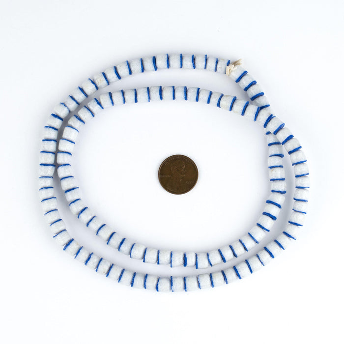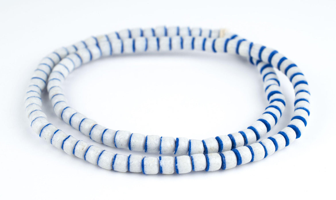 Checkout this beautiful strand of African sandcast. The process of making these beads is unique to Africa and has been used for over 1000 years. Pulverized glass of various colors is poured into a clay mold, using a cassava stem for the bead's hole. The mold is placed in a furnace and heated until the glass particles congeal without actually melting and the stem burns out. The Ghanaians have been making beads in this manner since the 1600s. Beads are measure 8mm in diameter.