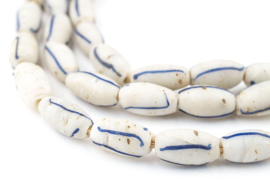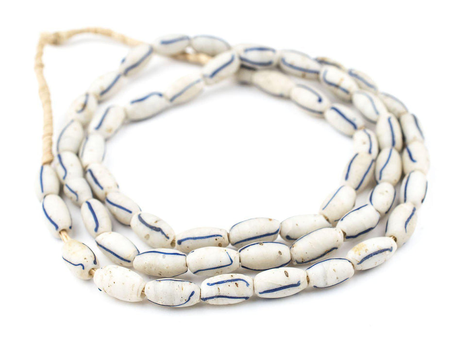 Blue & White Striped Venetian Watermelon Chevron Beads (Long Strand)