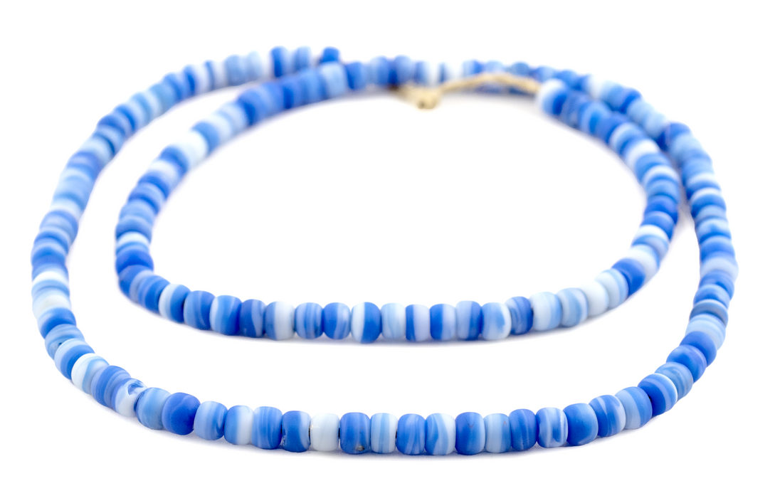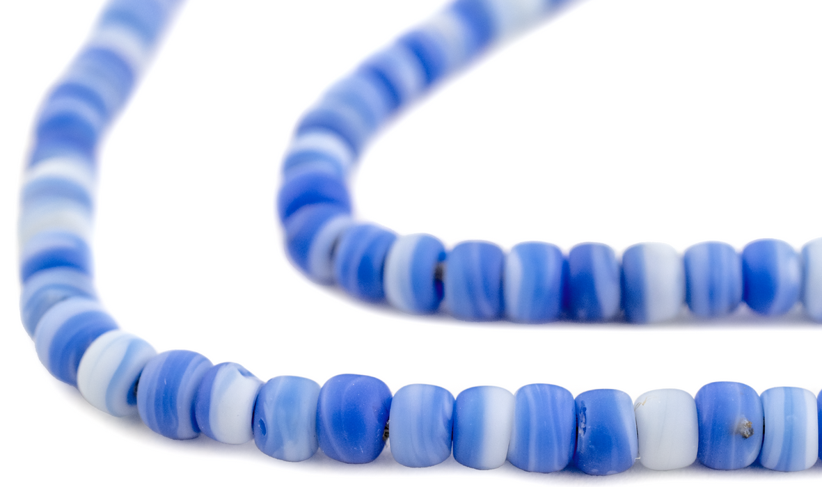Take a closer look at these amazing Blue and White Padre Beads. Each artisan bead features an eye-catching marbled pattern that is perfect for adding extra dimension to your jewelry design projects. Each bead measures roughly 4-5 x 6-7mm with a hole size of approximately 1-2mm. You will receive one full strand measuring about 26" in length. Each handmade strand is unique and the color and pattern may vary slightly from strand to strand. Secure your strand today and infuse your handmade designs with a distinctive and stylish look.