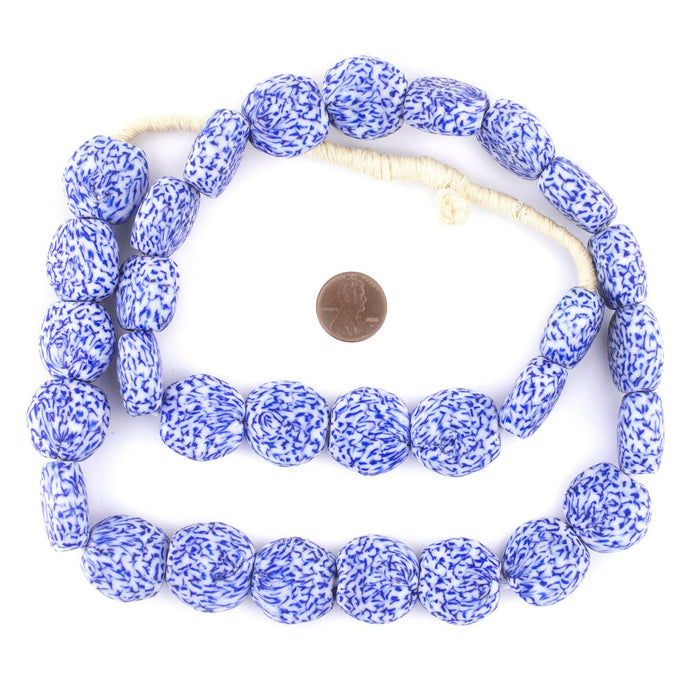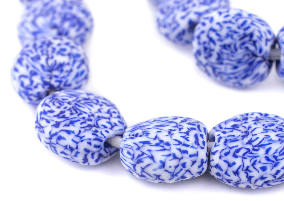 Blue & White Tabular Fused Recycled Glass Beads