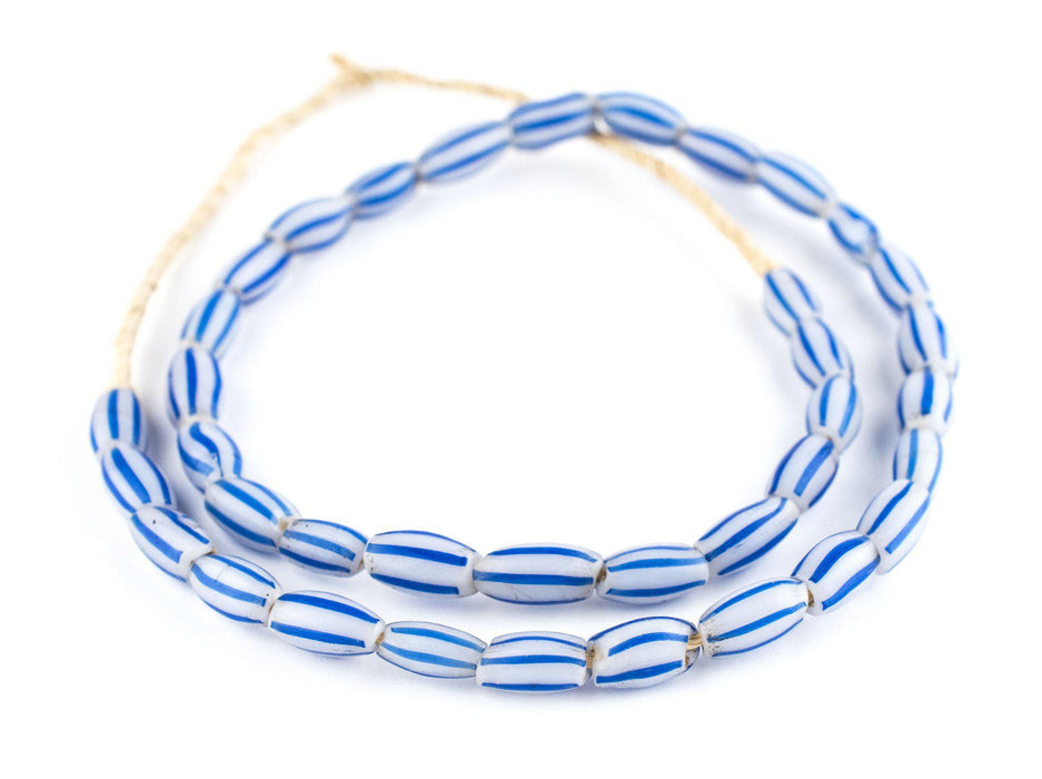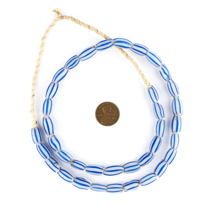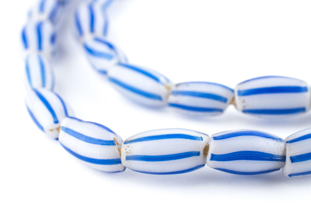Blue & White Venetian Watermelon Chevron Beads (14x7mm)