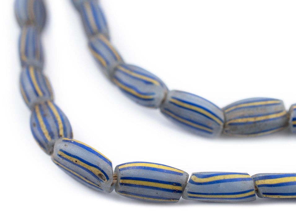 Blue & Yellow Striped Venetian Watermelon Chevron Beads