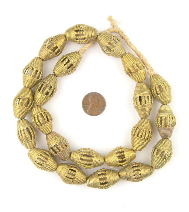 Braided Brass Ghana Filigree Oval Beads (23x15mm)