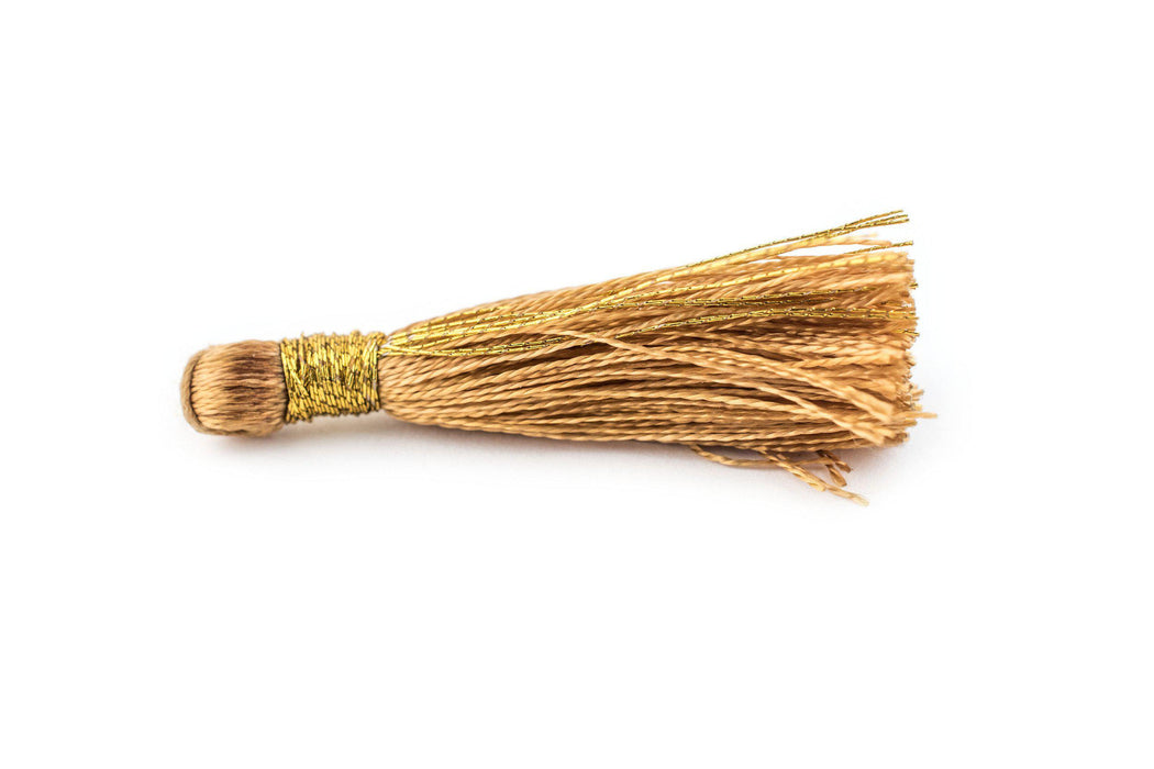 Look no further! These genuine silk tassels have been individually handmade by an expert of the craft. They are crafted from authentic Indian silk which is highly refined and world renown. Specially made for The Bead Chest, each high quality tassel is wrapped with a gold thread. Available in 20+ fun colors and 4 different sizes, you’ll find in our collection a tassel for almost every need. Each purchase of these brass color tassels will ship as a pack of five pieces. Individual tassels measure approximately 3 centimeters (1.2 inches) in length. May be used in jewelry designs, home decor, and art projects galore. Mix and match your favorite styles today!