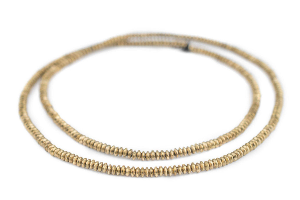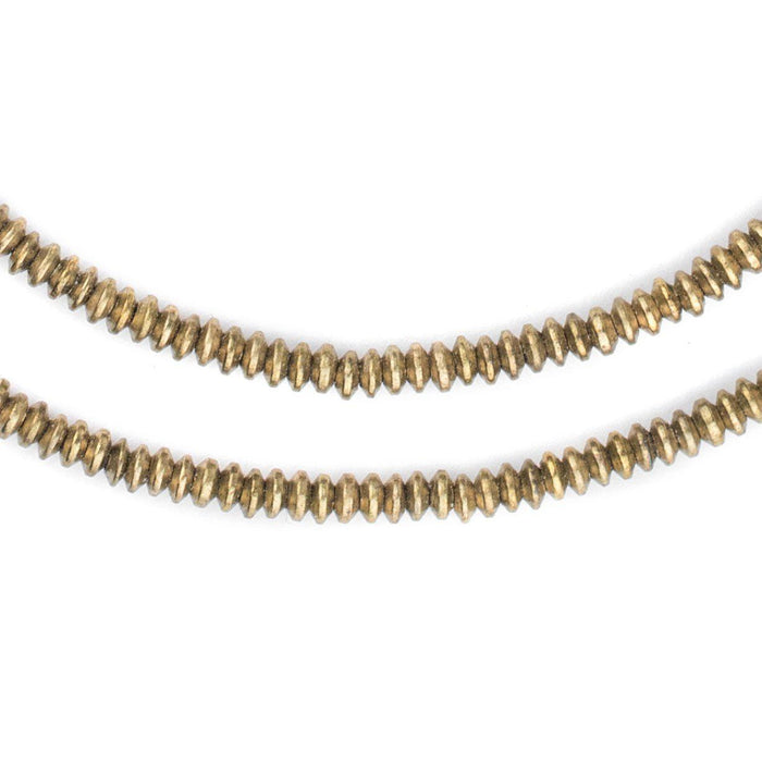 These brass saucer beads are crafted to perfection. Measuring approximately 4mm in diameter, each of these small beads is fashioned in a compressed bicone shape. They work great as spacers in your custom jewelry creations! Each strand measures approximately 24" in length, and the beads have an approximate hole size of 1.5mm. Great value!