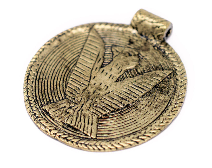 This beautiful brass pendant is hand casted in a traditional design from the Ivory Coast. Increasingly difficult to find, Baule (also known as Baoule) tribal pendants are some of the most unique casted pendants from West Africa. Each pendants measures approximately 58 x 52mm, with a hole size of approximately 2-3mm. We've partnered with a special workshop to bring this unique treasure to you. Pay close attention to the detail and note the high quality finish of this special pendant. Great as a pendant centerpiece on your next jewelry design!
