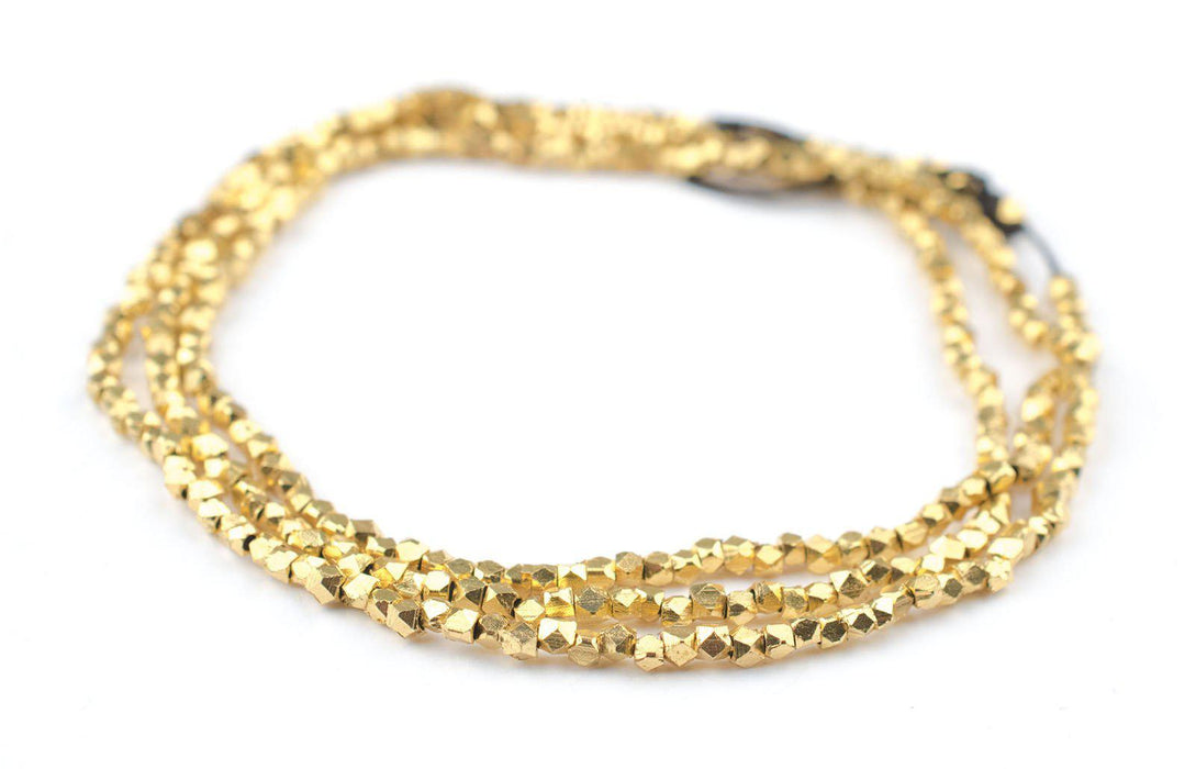 Take a look at this great strand of brass beads fashioned in a cube shape. Each strand is 27" inches long with approximately 300 beads measuring 2 x 2mm. These great beads are highly versatile and may be used as spacers or accents in your unique designs. A great addition to your beading toolkit! Please note a small percentage of beads per strand may not be usable due to irregularities as shown in photo.