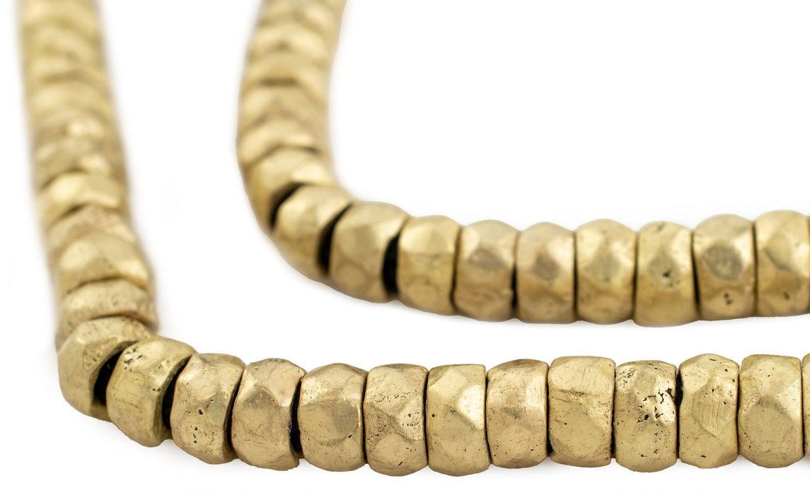 These brass beads are fashioned in an unusual faceted cylinder shape. Individual beads measure 4x8mm with a large 5mm hole. Each strand measures 9" in length. Great beads for any project!