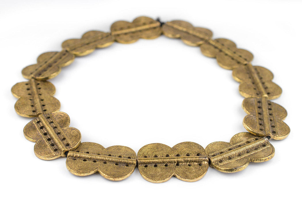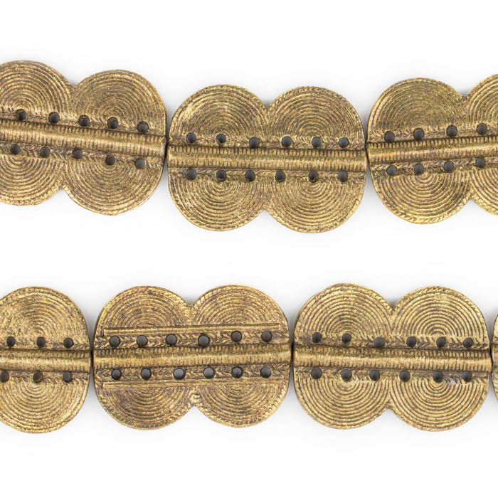 These beautiful brass beads are hand casted in a traditional design from the Ivory Coast. Increasingly difficult to find, Baule (also known as Baoule) tribal beads are some of the most unique casted beads from West Africa. Each bead measures approximately 49 x 36mm, with a hole size of approximately 2mm. We've partnered with a special workshop to bring this unique treasure to you. Pay close attention to the detail and note the high quality finish of these special beads. Shade of brass may vary slightly from photo for some strands. Great as pendant centerpieces on your next jewelry design! Please note that while beads are photographed as strands for reference, they may be shipped strung or loose depending on the batch. This does not affect bead quantity or quality.